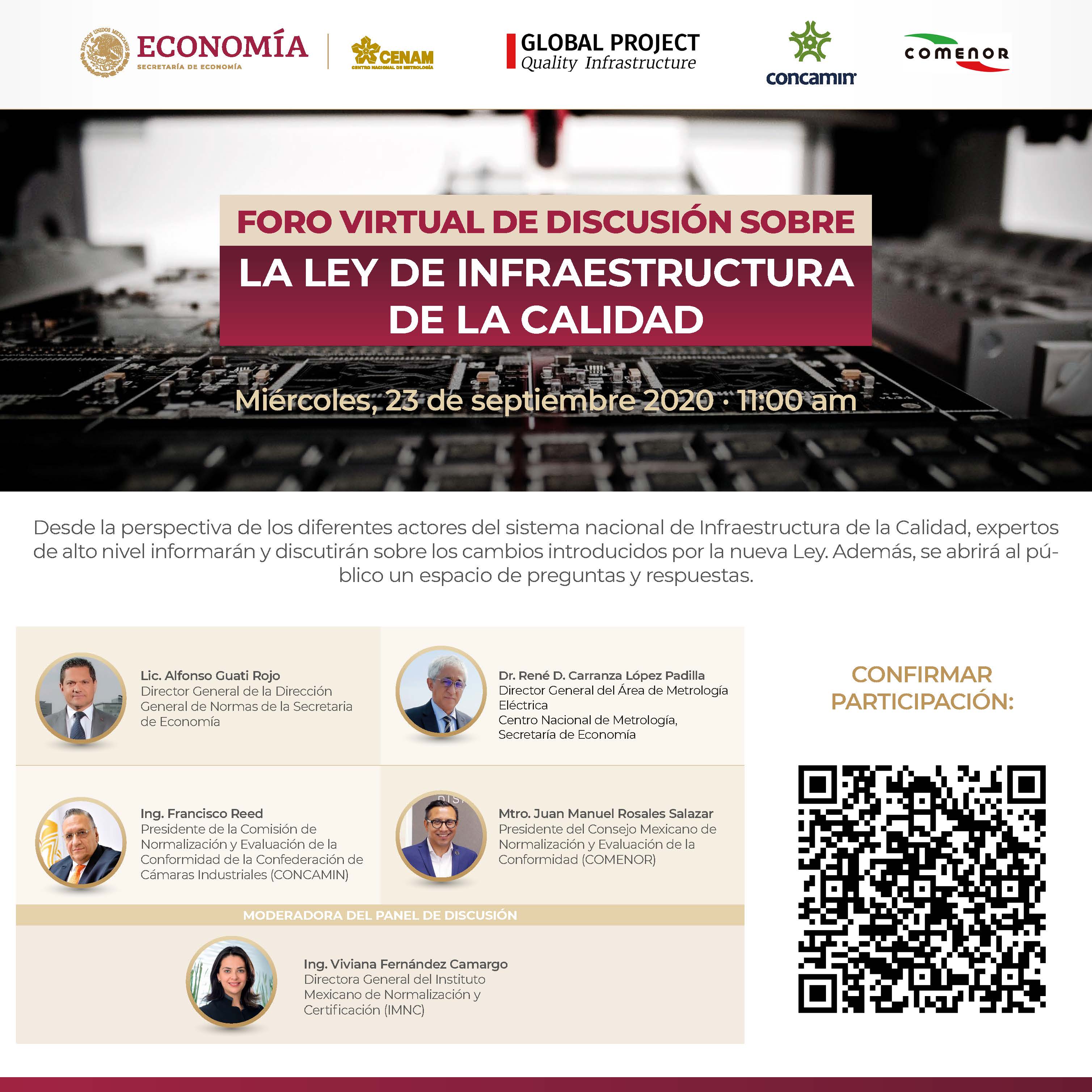 The Virtual Discussion Forum on the new Quality Infrastructure Law in Mexico is taking place on September 23, from 11:00 to 13:00 (Mexican time, UTC -5) / 18:00 to 20:00 (German time, UTC +2)