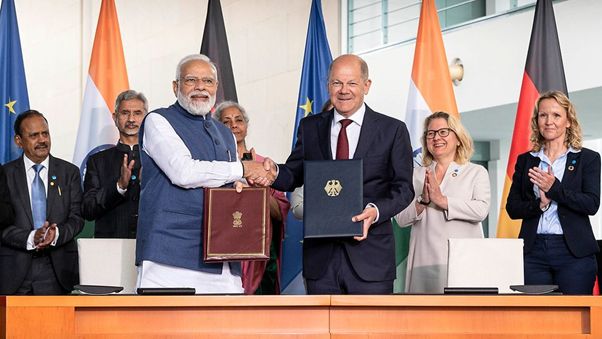 Auf Einladung von Bundeskanzler Olaf Scholz reiste Premierminister Narendra Modi anlässlich der 6. deutsch-indischen Regierungskonsultationen am 2. Mai nach Deutschland. Beide Regierungen bekräftigten in den Gesprächen die Bedeutung ihrer politischen und wirtschaftlichen Zusammenarbeit und betonten ihre Absicht diese weiter auszubauen. Bundeskanzler Scholz nannte Indien einen Schlüsselpartner Deutschlands in Asien. Beide Seiten beschlossen unter anderem eine neue Partnerschaft für grüne und nachhaltige Entwicklung, die auch den Aufbau einer Task Force zu grünem Wasserstoff vorsieht, sowie eine neue Migrations- und Mobilitätspartnerschaft.