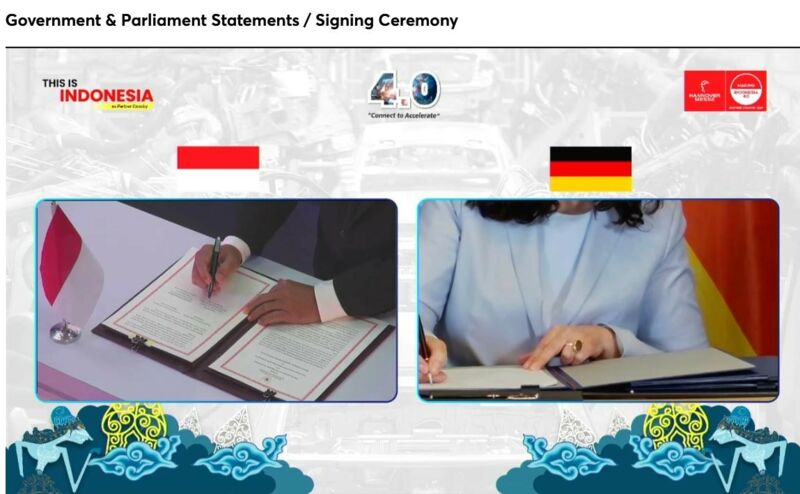 Die Parlamentarische Staatssekretärin Elisabeth Winkelmeier-Becker und der Head of Standardisation and Industrial Services Policy Agency (BSKJI) of the Ministry of Industry, Doddy Rahadi starten den deutsch-indonesischen Dialog zur Qualitätsinfrastruktur. Im Rahmen der Hannover Messe am 12. April 2021 unterzeichneten sie offiziell eine gemeinsame Absichtserklärung.