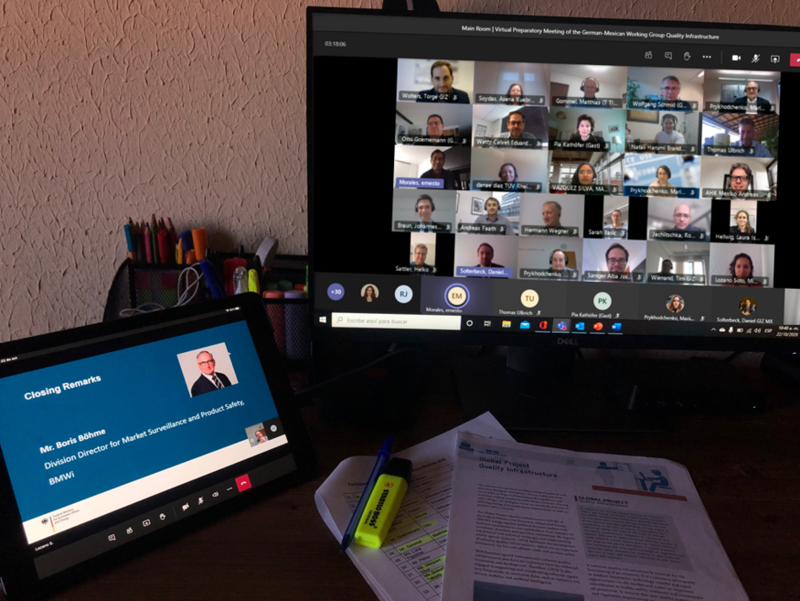 Mehr als 40 Vertreter*innen deutscher QI-Institutionen und der Industrie nahmen am virtuellen Vorbereitungstreffen der deutsch-mexikanischen Arbeitsgruppe Qualitätsinfrastruktur am 22. Oktober 2020 mit dem Bundesministerium für Wirtschaft und Energie (BMWi) teil. Gemeinsam identifizierten sie relevante Themen für den Arbeitsplan 2021. Der Plan soll während der Jahrestagung im Dezember unterzeichnet werden.