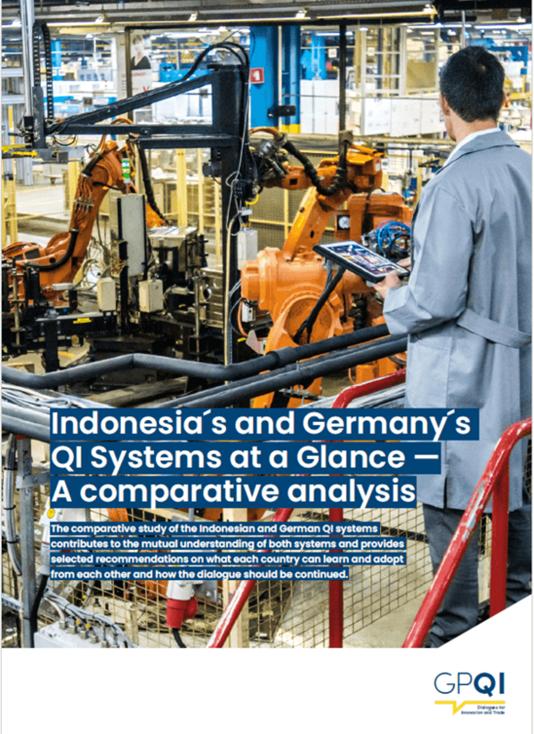 The Comparative Study of Indonesia’s and Germany’s Quality Infrastructure Systems was published to shed light on both countries’ Quality Infrastructure (QI) systems, their similarities and differences and to foster a deeper mutual understanding. The study provides recommendations on what each country can learn and adopt from each other’s QI policies and regulations, as well as best practices to avoid unnecessary barriers to trade and facilitate market access for products. The recommendations cover topics such as technical regulations, mutual recognition of test results and certification, QI for circular economy and digital technologies.