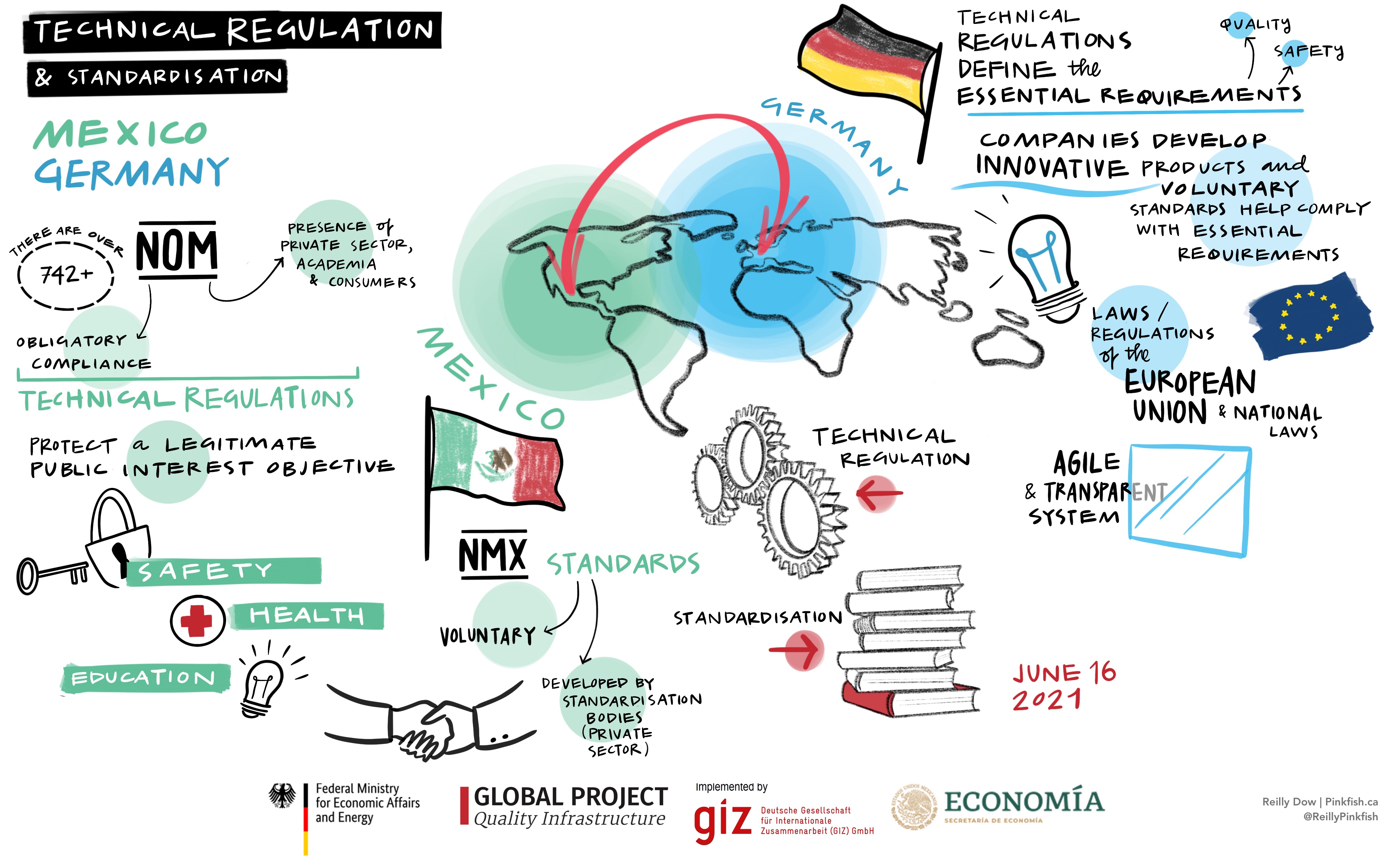 Representatives from governmental authorities, relevant quality infrastructure (QI) institutions and the private sector, complemented the country perspectives. On behalf of the government, Dr Julia Barde, Senior Policy Advisor, Division of National and International Policy on Standardisation and Patent Policy, BMWi; and Emeterio Mosso, Director of Standardisation for Light Manufacturing Industry from the DGN, SE, gave specific insight on how technical regulation is organised in Germany and Mexico respectively.