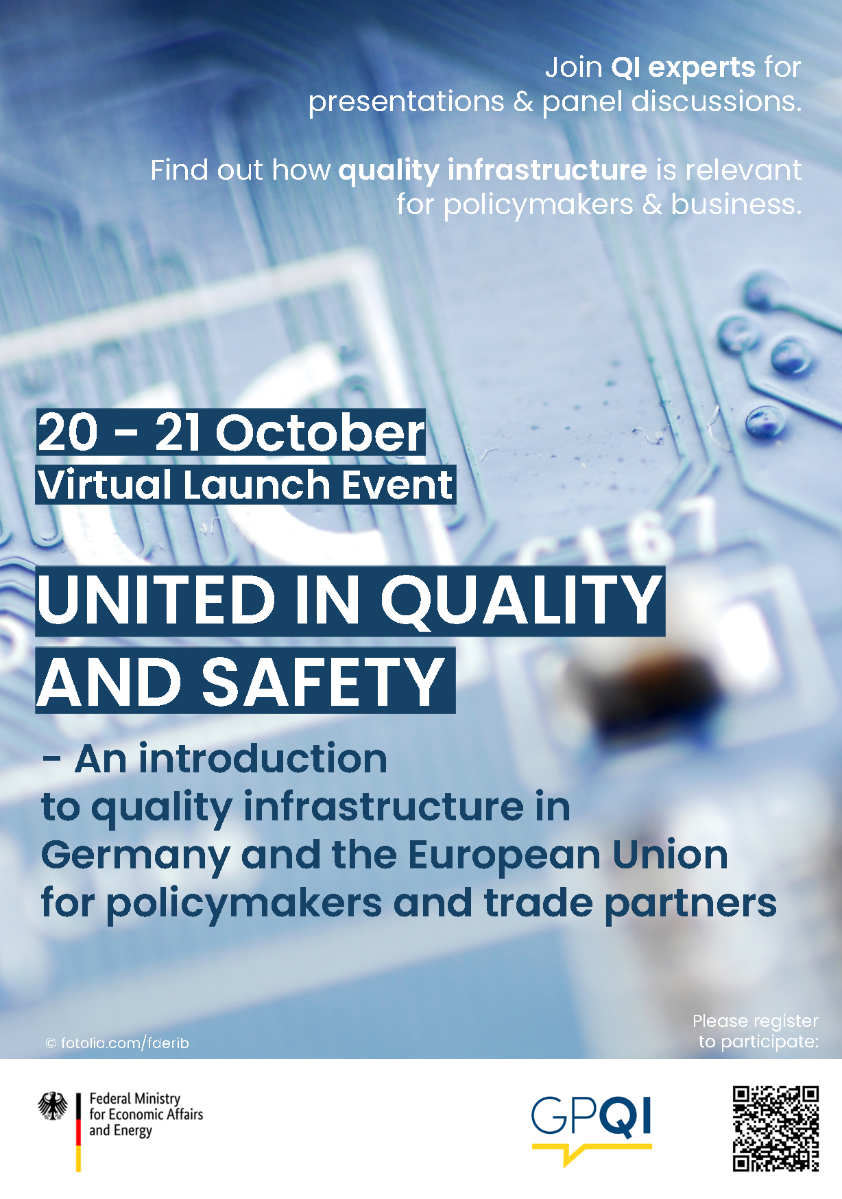 Im Rahmen des Globalprojekts Qualitätsinfrastruktur lädt das Bundesministerium für Wirtschaft und Energie (BMWi) am 20. und 21. Oktober 2021 zum Launch der Publikation „United in Quality and Safety - An introduction to quality infrastructure in Germany and the European Union for policymakers and trade partners“ ein.