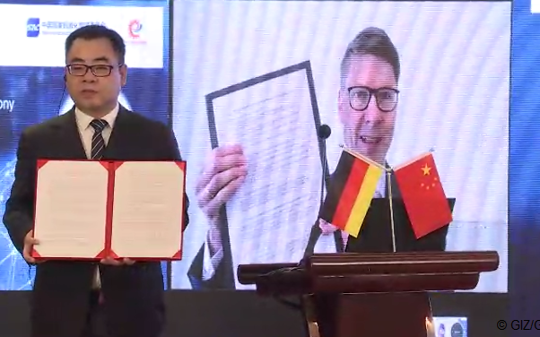 Dr. Jens Gayko (SCI4.0) and Mr. LIU Dashan present the signed protocol of the plenary meeting.