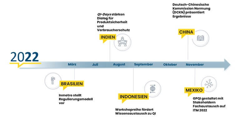 Das GPQI begleitete 41 Workshops und Arbeitsgruppensitzungen, an denen Ministerien und Behörden, Industrie, Wissenschaft und QI-Institutionen aus Deutschland und den Partnerländern teilnahmen. Daraus entstanden neun Publikationen, drei Factsheets und 44 Newsartikel sowie ein reger Austausch auf LinkedIn. Damit leisteten alle Beteiligten einen Beitrag zur weltweiten Harmonisierung von Qualitätsinfrastrukturen.