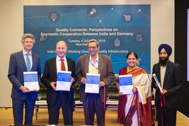 Within the framework of the event “Quality Connects”, the German Federal Ministry for Economic Affairs and Energy (BMWi) and the Indian Ministry of Consumer Affairs, Food & Public Distribution came together in New Delhi on 4 December. The focus of the event was the launch of an overview publication of India’s quality infrastructure landscape. The attending representatives from government and business welcomed the publication, which serves as a guide to standards development, technical regulation, conformity assessment, accreditation, and the market surveillance system in India.