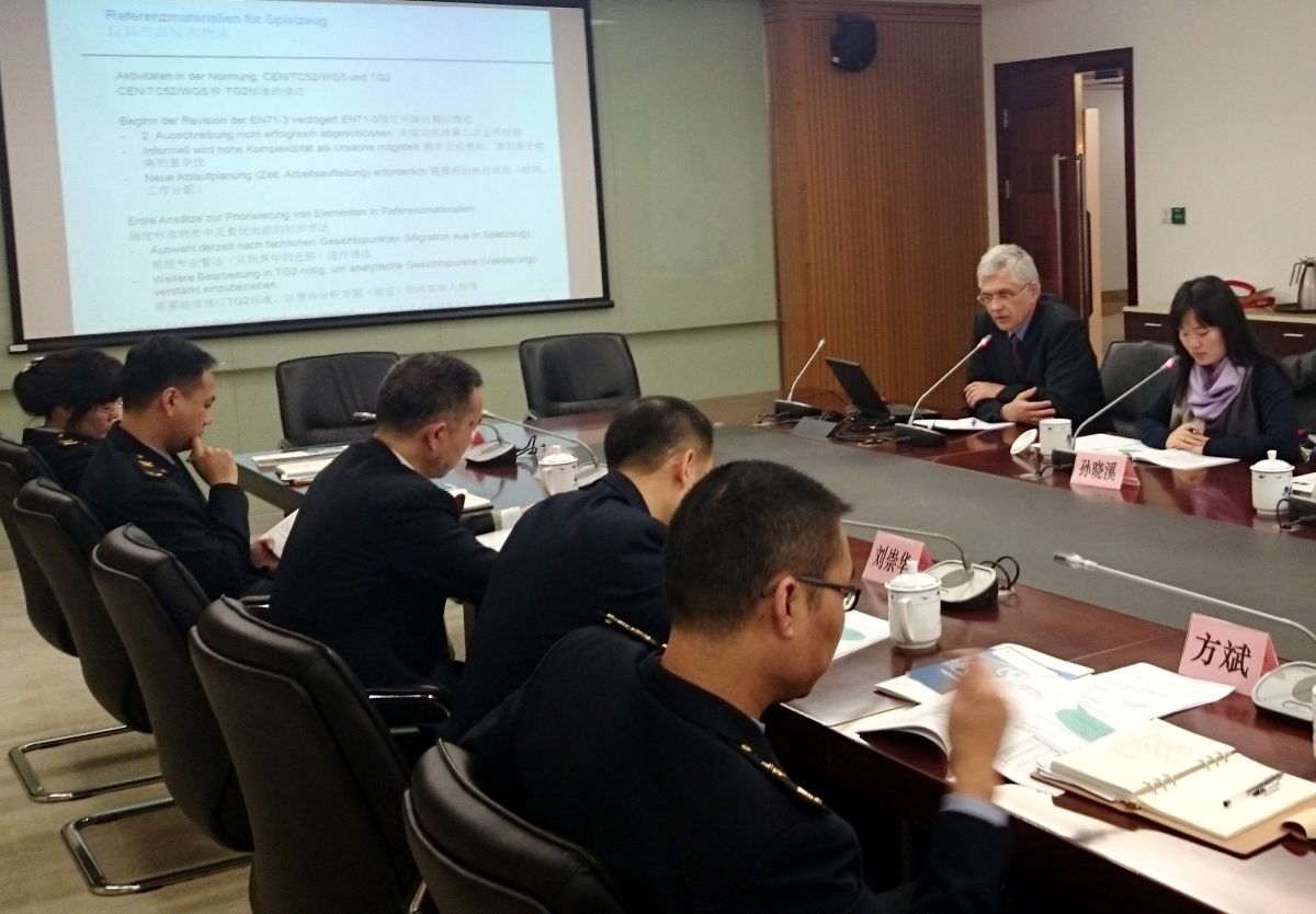 The Chinese participants presented the progress in developing parts of the substances listed in the annex of EN 71-3. Following a suggestion of the German side, further research cooperation will be explored in the first half of 2015.